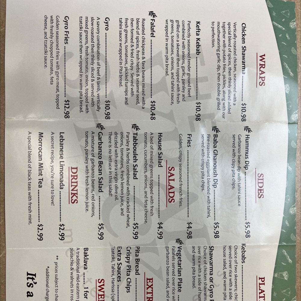 The menu features house specials like the Kefta Kebab Wrap and Chicken Shawarma Wrap, both bursting with flavors and grilled to perfection. For those craving vegetarian options, the Falafel Wrap and Garbanzo Bean Salad provide hearty satisfaction. Don’t forget to try their enticing Hummus and Stuffed Grape Leaves as sides.